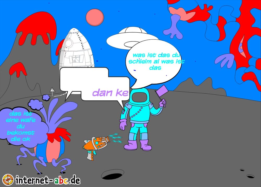 Mit der Rakete fliegen die 4 Internet-ABC-Tiere in den Weltraum. Was sie dort sehen und erleben, könnt ihr in diesem Baukasten malen und erzählen.