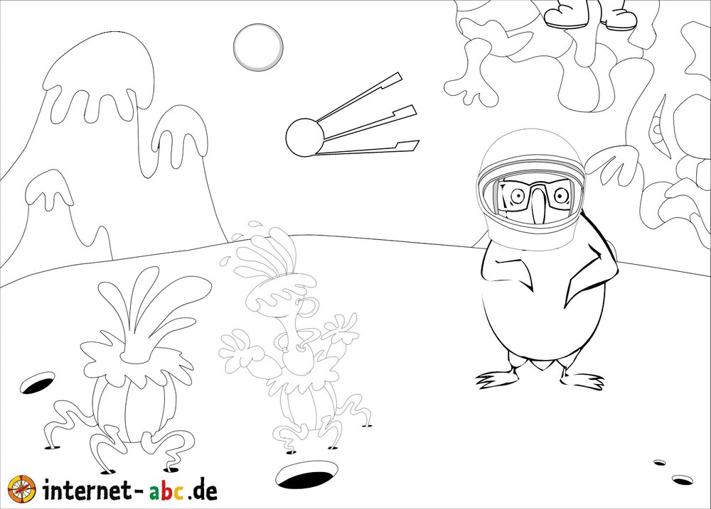 Mit der Rakete fliegen die 4 Internet-ABC-Tiere in den Weltraum. Was sie dort sehen und erleben, könnt ihr in diesem Baukasten malen und erzählen.