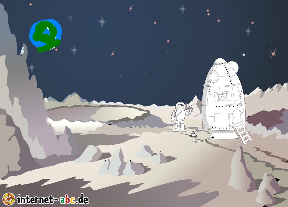 Mit der Rakete fliegen die 4 Internet-ABC-Tiere in den Weltraum. Was sie dort sehen und erleben, könnt ihr in diesem Baukasten malen und erzählen.