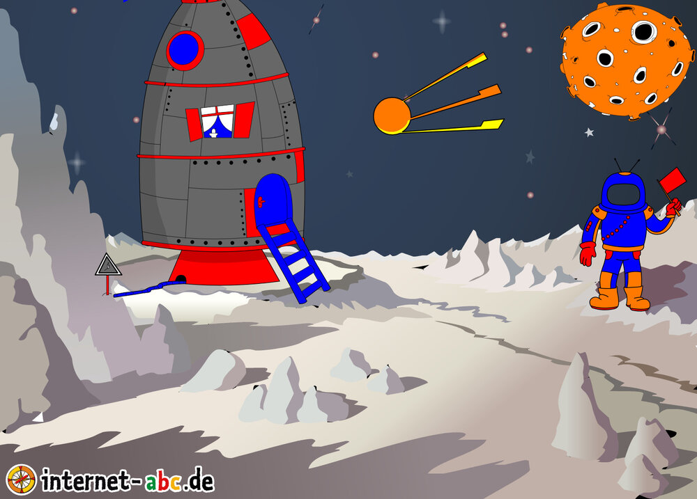 Mit der Rakete fliegen die 4 Internet-ABC-Tiere in den Weltraum. Was sie dort sehen und erleben, könnt ihr in diesem Baukasten malen und erzählen.