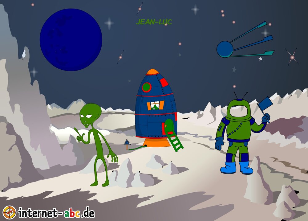 Mit der Rakete fliegen die 4 Internet-ABC-Tiere in den Weltraum. Was sie dort sehen und erleben, könnt ihr in diesem Baukasten malen und erzählen.
