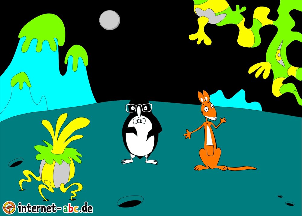 Mit der Rakete fliegen die 4 Internet-ABC-Tiere in den Weltraum. Was sie dort sehen und erleben, könnt ihr in diesem Baukasten malen und erzählen.