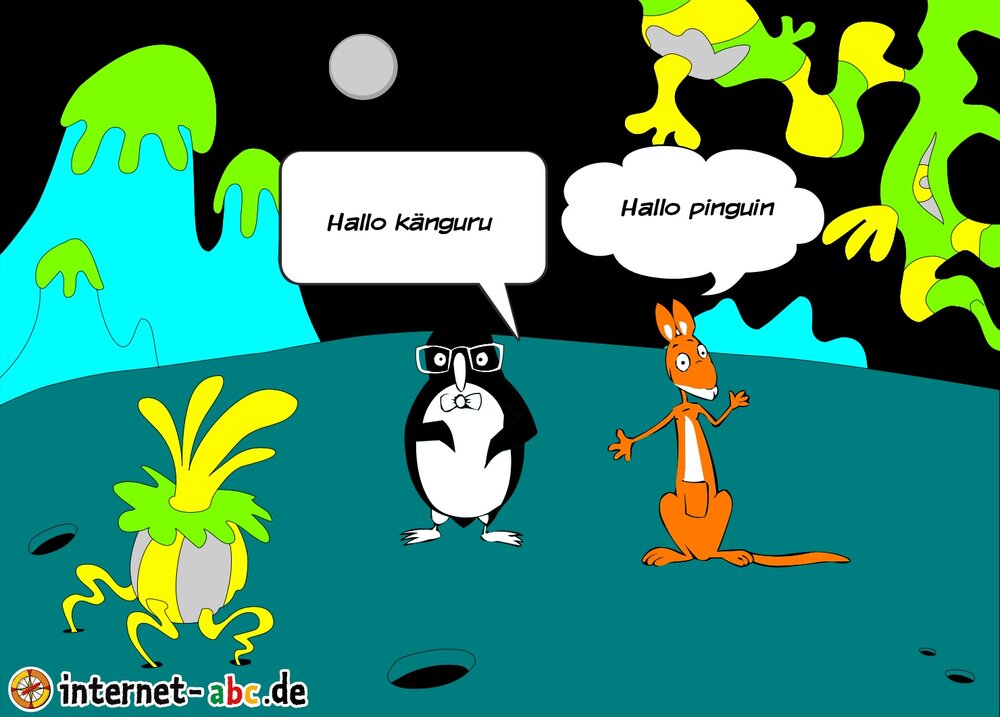 Mit der Rakete fliegen die 4 Internet-ABC-Tiere in den Weltraum. Was sie dort sehen und erleben, könnt ihr in diesem Baukasten malen und erzählen.