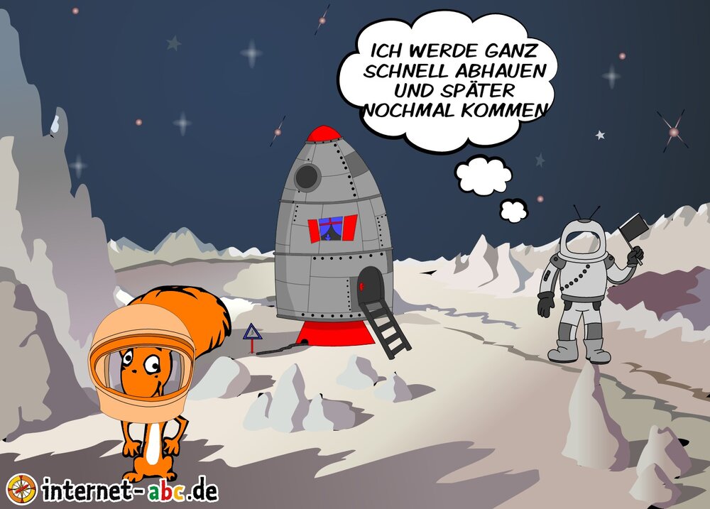 Mit der Rakete fliegen die 4 Internet-ABC-Tiere in den Weltraum. Was sie dort sehen und erleben, könnt ihr in diesem Baukasten malen und erzählen.