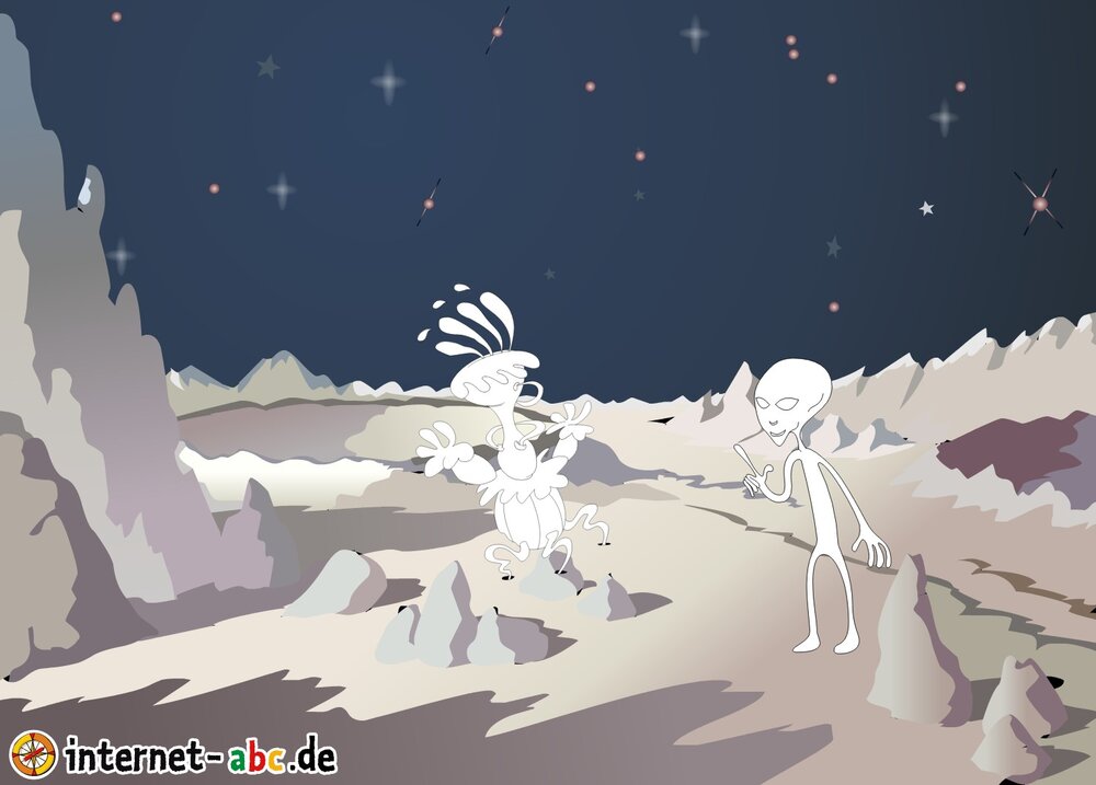 Mit der Rakete fliegen die 4 Internet-ABC-Tiere in den Weltraum. Was sie dort sehen und erleben, könnt ihr in diesem Baukasten malen und erzählen.
