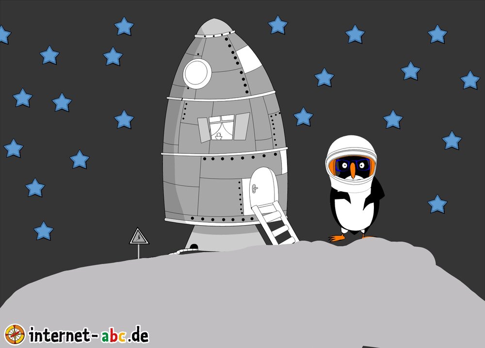 Mit der Rakete fliegen die 4 Internet-ABC-Tiere in den Weltraum. Was sie dort sehen und erleben, könnt ihr in diesem Baukasten malen und erzählen.