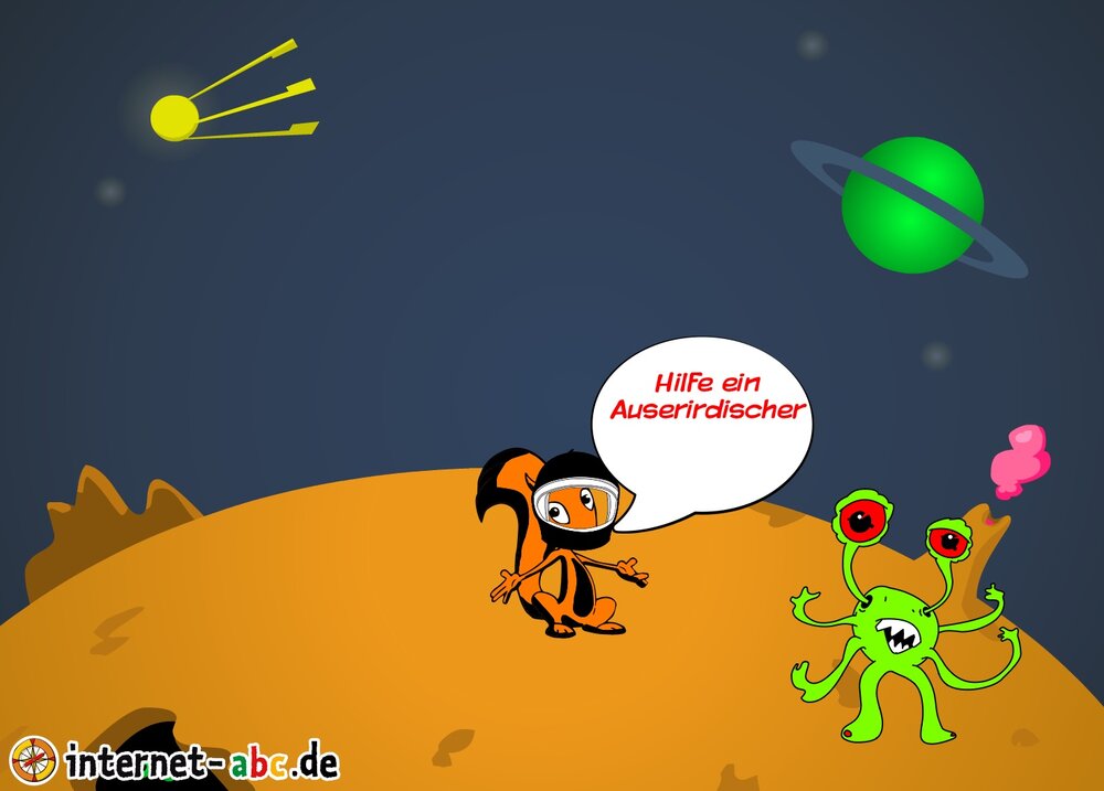 Mit der Rakete fliegen die 4 Internet-ABC-Tiere in den Weltraum. Was sie dort sehen und erleben, könnt ihr in diesem Baukasten malen und erzählen.