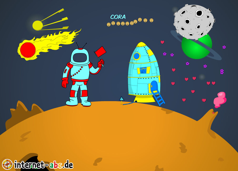 Mit der Rakete fliegen die 4 Internet-ABC-Tiere in den Weltraum. Was sie dort sehen und erleben, könnt ihr in diesem Baukasten malen und erzählen.