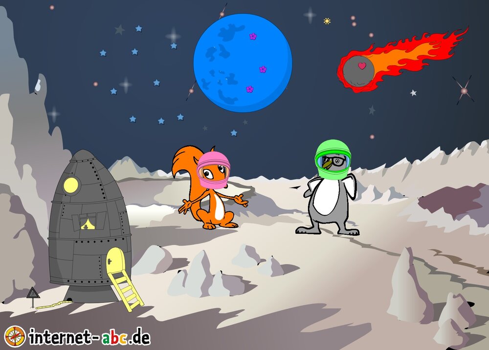 Mit der Rakete fliegen die 4 Internet-ABC-Tiere in den Weltraum. Was sie dort sehen und erleben, könnt ihr in diesem Baukasten malen und erzählen.