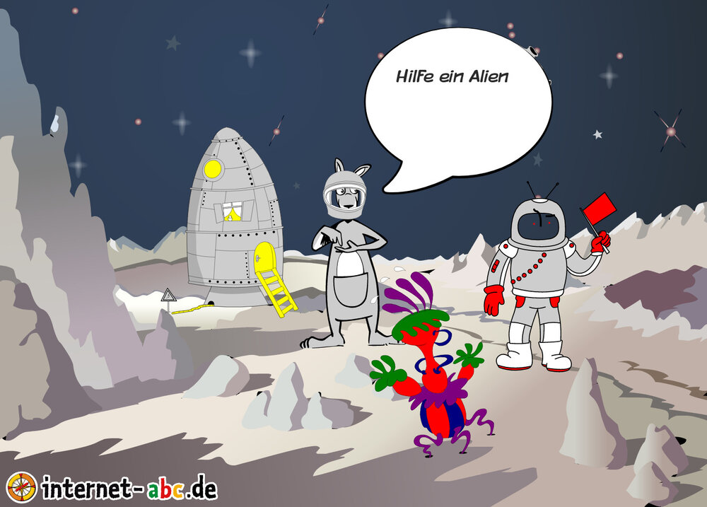 Mit der Rakete fliegen die 4 Internet-ABC-Tiere in den Weltraum. Was sie dort sehen und erleben, könnt ihr in diesem Baukasten malen und erzählen.