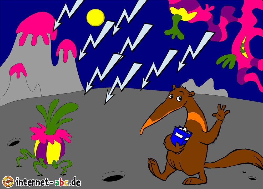 Mit der Rakete fliegen die 4 Internet-ABC-Tiere in den Weltraum. Was sie dort sehen und erleben, könnt ihr in diesem Baukasten malen und erzählen.