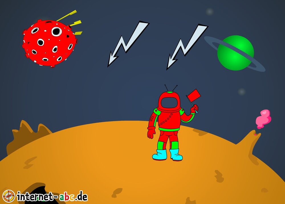 Mit der Rakete fliegen die 4 Internet-ABC-Tiere in den Weltraum. Was sie dort sehen und erleben, könnt ihr in diesem Baukasten malen und erzählen.