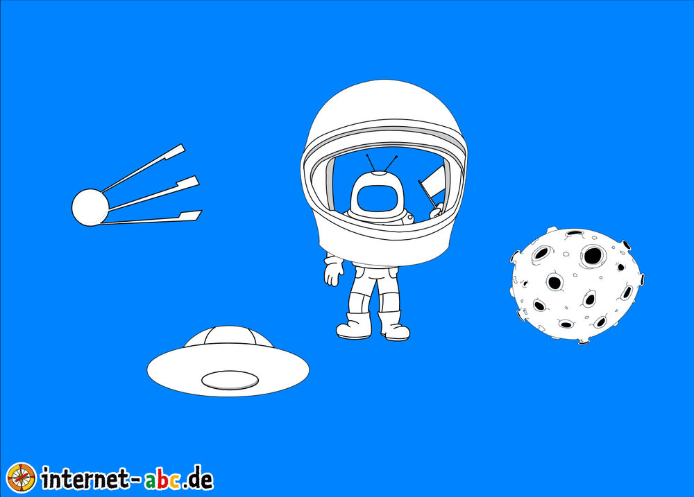 Mit der Rakete fliegen die 4 Internet-ABC-Tiere in den Weltraum. Was sie dort sehen und erleben, könnt ihr in diesem Baukasten malen und erzählen.