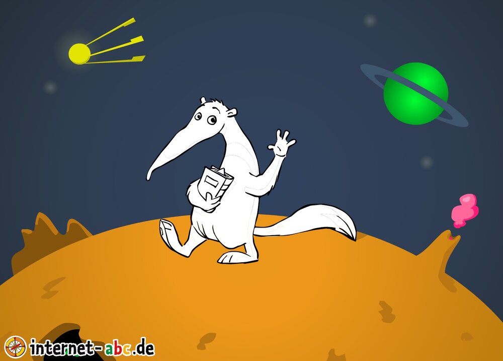 Mit der Rakete fliegen die 4 Internet-ABC-Tiere in den Weltraum. Was sie dort sehen und erleben, könnt ihr in diesem Baukasten malen und erzählen.