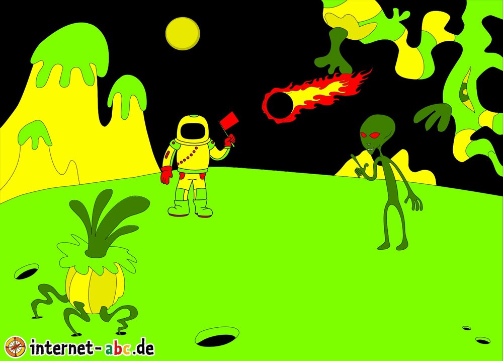 Mit der Rakete fliegen die 4 Internet-ABC-Tiere in den Weltraum. Was sie dort sehen und erleben, könnt ihr in diesem Baukasten malen und erzählen.