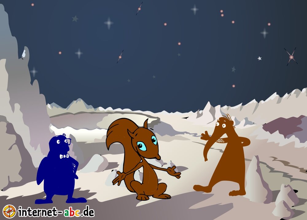 Mit der Rakete fliegen die 4 Internet-ABC-Tiere in den Weltraum. Was sie dort sehen und erleben, könnt ihr in diesem Baukasten malen und erzählen.