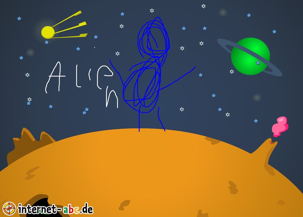 Mit der Rakete fliegen die 4 Internet-ABC-Tiere in den Weltraum. Was sie dort sehen und erleben, könnt ihr in diesem Baukasten malen und erzählen.