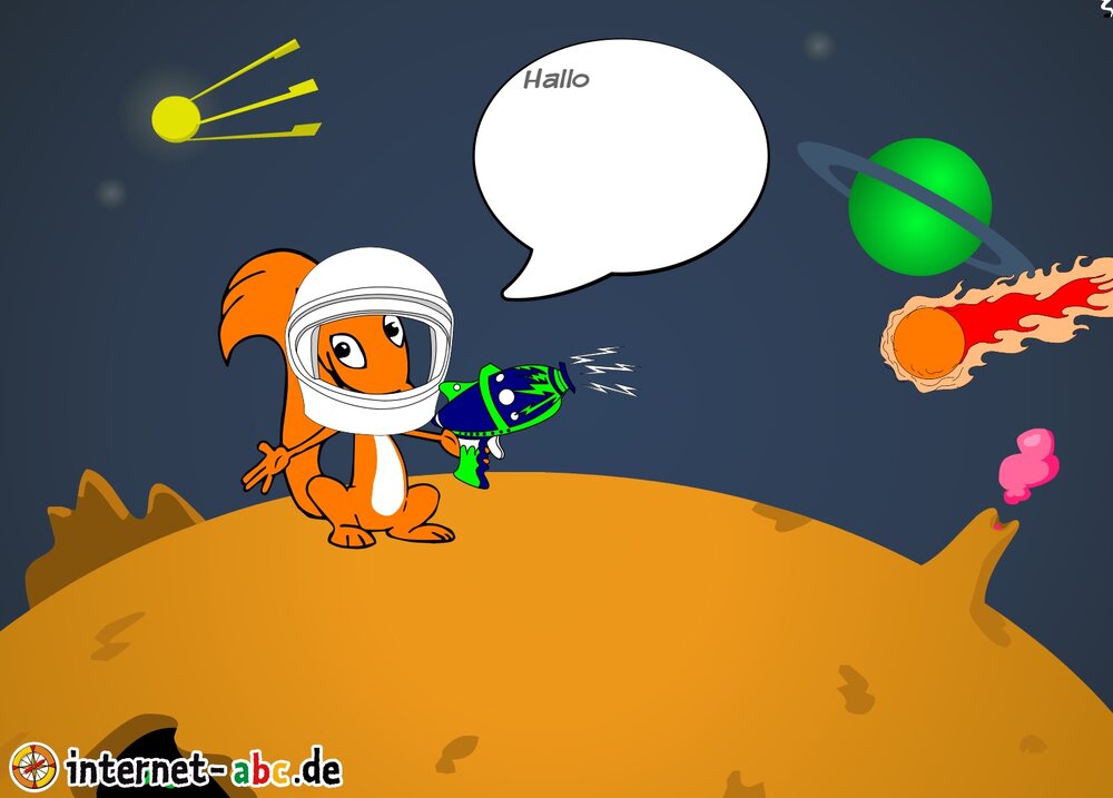 Mit der Rakete fliegen die 4 Internet-ABC-Tiere in den Weltraum. Was sie dort sehen und erleben, könnt ihr in diesem Baukasten malen und erzählen.