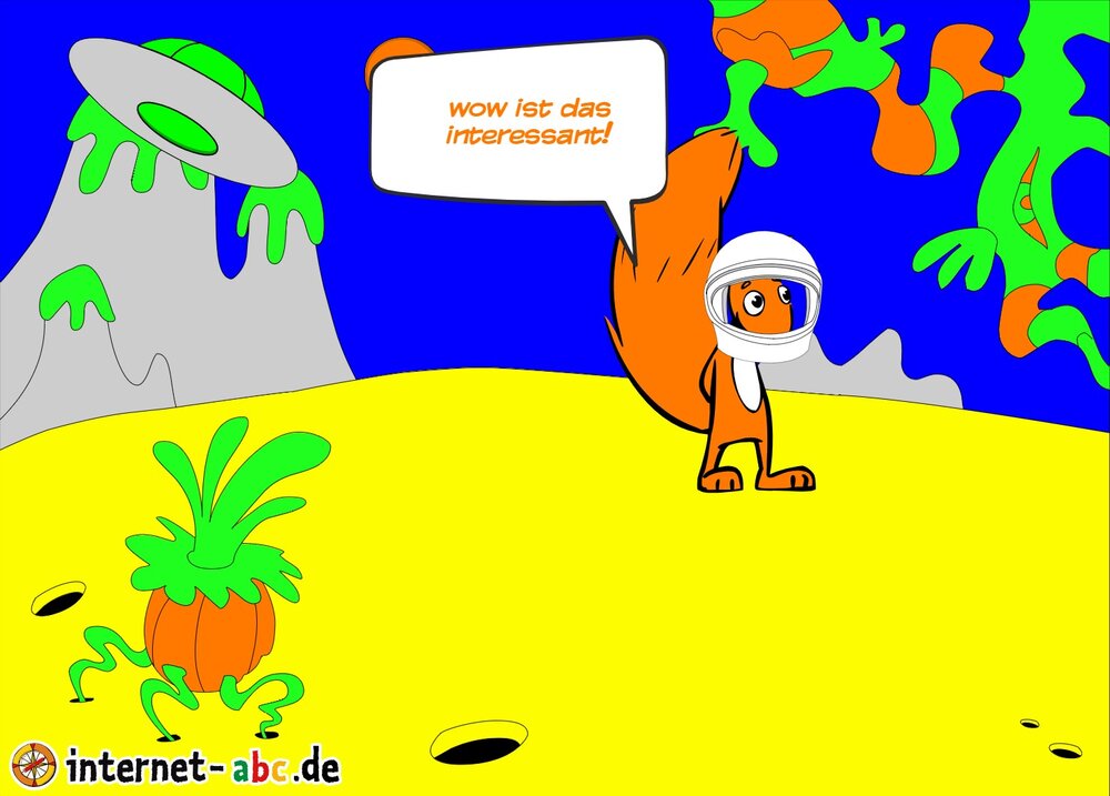 Mit der Rakete fliegen die 4 Internet-ABC-Tiere in den Weltraum. Was sie dort sehen und erleben, könnt ihr in diesem Baukasten malen und erzählen.