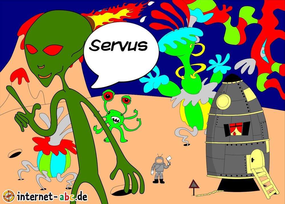 Mit der Rakete fliegen die 4 Internet-ABC-Tiere in den Weltraum. Was sie dort sehen und erleben, könnt ihr in diesem Baukasten malen und erzählen.