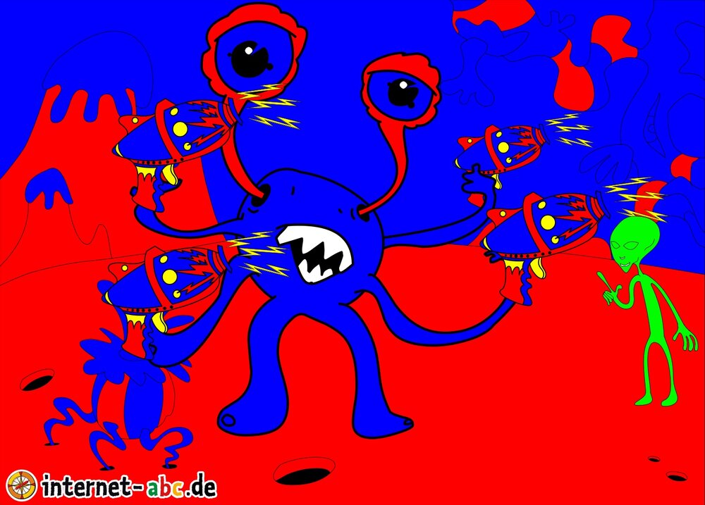 Mit der Rakete fliegen die 4 Internet-ABC-Tiere in den Weltraum. Was sie dort sehen und erleben, könnt ihr in diesem Baukasten malen und erzählen.