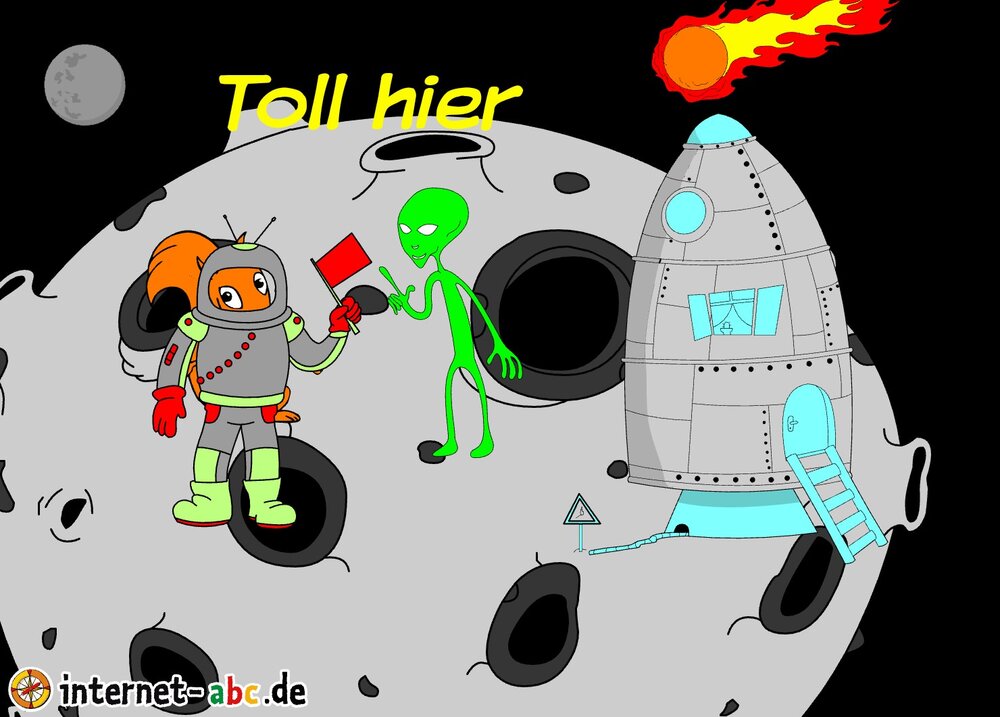 Mit der Rakete fliegen die 4 Internet-ABC-Tiere in den Weltraum. Was sie dort sehen und erleben, könnt ihr in diesem Baukasten malen und erzählen.