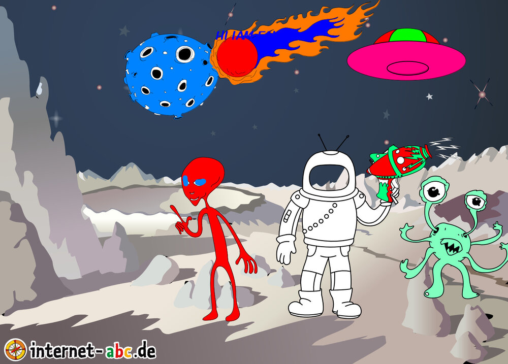 Hier kannst du sehen, welche Bilder es schon zum Thema Weltraum gibt. Klicke auf ein Bild oder eine Überschrift, um zur Seite zu gelangen. Dort findest du auch eine passende Geschichte zum Bild.