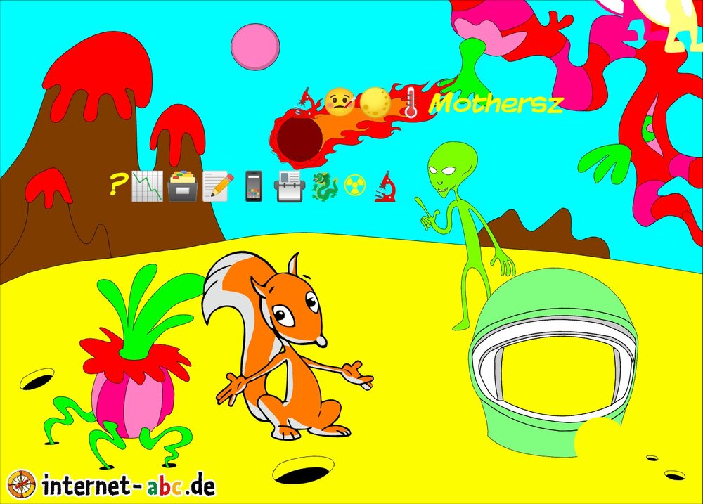 Mit der Rakete fliegen die 4 Internet-ABC-Tiere in den Weltraum. Was sie dort sehen und erleben, könnt ihr in diesem Baukasten malen und erzählen.