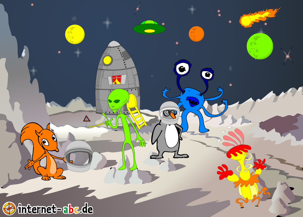 Hier kannst du sehen, welche Bilder es schon zum Thema Weltraum gibt. Klicke auf ein Bild oder eine Überschrift, um zur Seite zu gelangen. Dort findest du auch eine passende Geschichte zum Bild.
