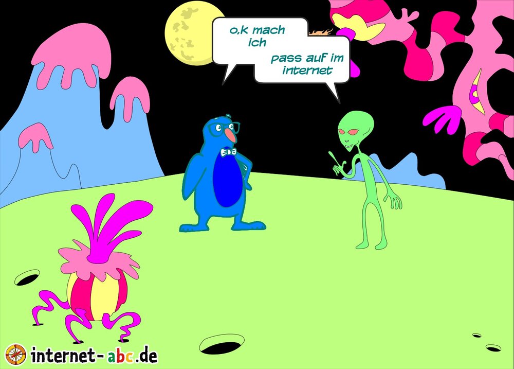 Mit der Rakete fliegen die 4 Internet-ABC-Tiere in den Weltraum. Was sie dort sehen und erleben, könnt ihr in diesem Baukasten malen und erzählen.