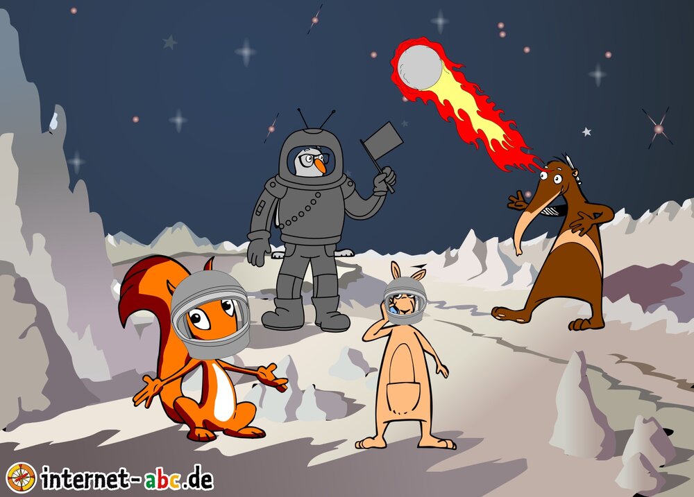Mit der Rakete fliegen die 4 Internet-ABC-Tiere in den Weltraum. Was sie dort sehen und erleben, könnt ihr in diesem Baukasten malen und erzählen.