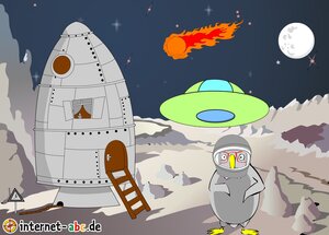 Mit der Rakete fliegen die 4 Internet-ABC-Tiere in den Weltraum. Was sie dort sehen und erleben, könnt ihr in diesem Baukasten malen und erzählen.