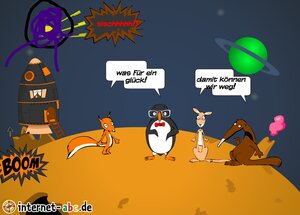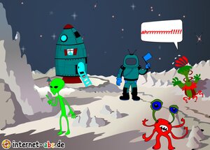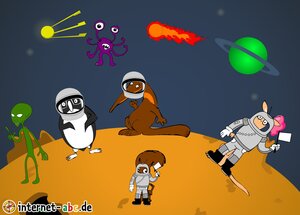 Mit der Rakete fliegen die 4 Internet-ABC-Tiere in den Weltraum. Was sie dort sehen und erleben, könnt ihr in diesem Baukasten malen und erzählen.