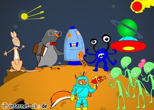 Mit der Rakete fliegen die 4 Internet-ABC-Tiere in den Weltraum. Was sie dort sehen und erleben, könnt ihr in diesem Baukasten malen und erzählen.