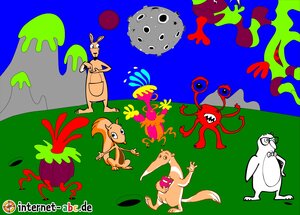 Mit der Rakete fliegen die 4 Internet-ABC-Tiere in den Weltraum. Was sie dort sehen und erleben, könnt ihr in diesem Baukasten malen und erzählen.