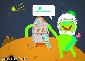 Mit der Rakete fliegen die 4 Internet-ABC-Tiere in den Weltraum. Was sie dort sehen und erleben, könnt ihr in diesem Baukasten malen und erzählen.