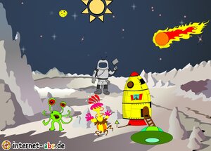 Mit der Rakete fliegen die 4 Internet-ABC-Tiere in den Weltraum. Was sie dort sehen und erleben, könnt ihr in diesem Baukasten malen und erzählen.