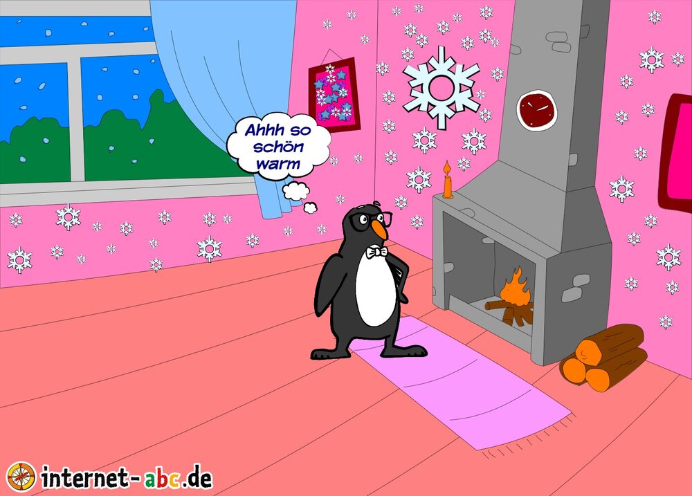 an einem schönen wintertag hat pingi sich vor seinen Kamin gesetzt