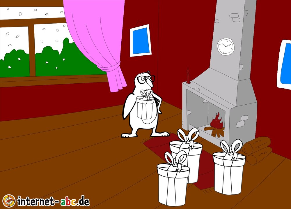 Es ist Weihnacht aber der Pinguin ist ganz alleine dafür hatt er tolle Geschenke bekommen