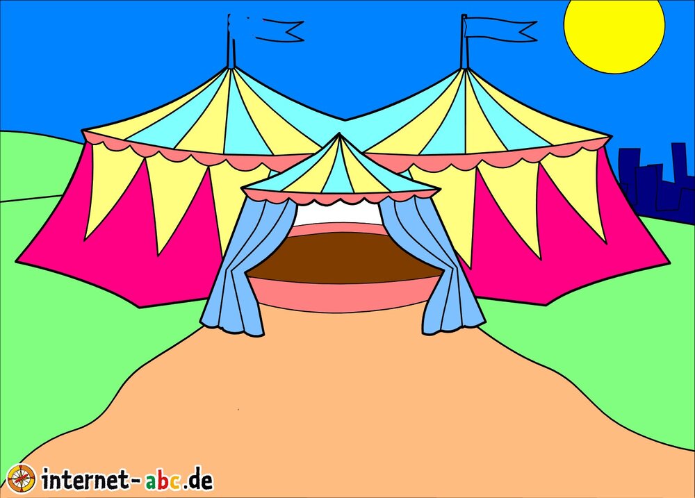 Gehst du gern in den Zirkus? Dann male doch ein schönes Bild mit den Internet-ABC-Tieren. Und erzähle dann eine kleine Geschichte dazu, okay?