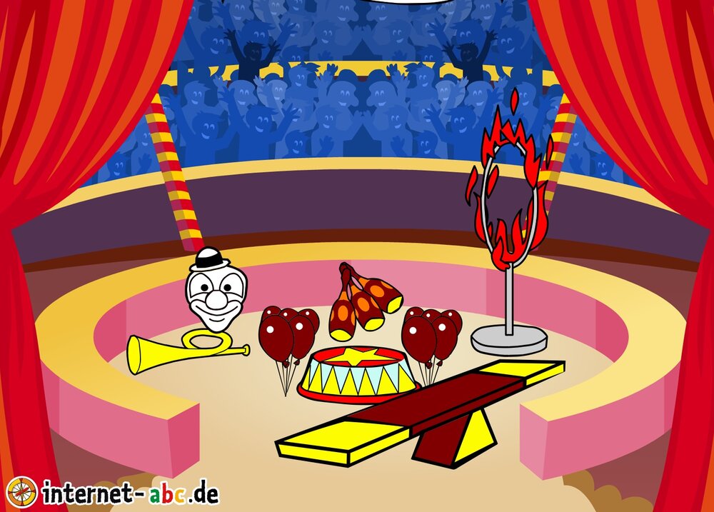 Gehst du gern in den Zirkus? Dann male doch ein schönes Bild mit den Internet-ABC-Tieren. Und erzähle dann eine kleine Geschichte dazu, okay?