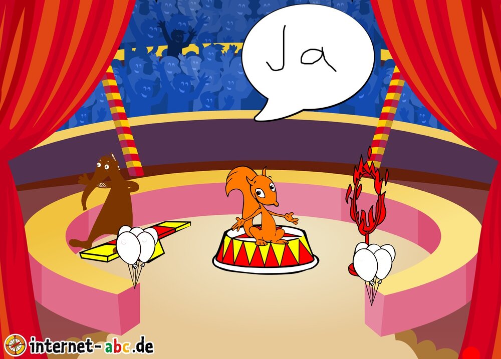Gehst du gern in den Zirkus? Dann male doch ein schönes Bild mit den Internet-ABC-Tieren. Und erzähle dann eine kleine Geschichte dazu, okay?