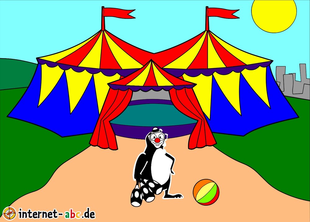 Gehst du gern in den Zirkus? Dann male doch ein schönes Bild mit den Internet-ABC-Tieren. Und erzähle dann eine kleine Geschichte dazu, okay?