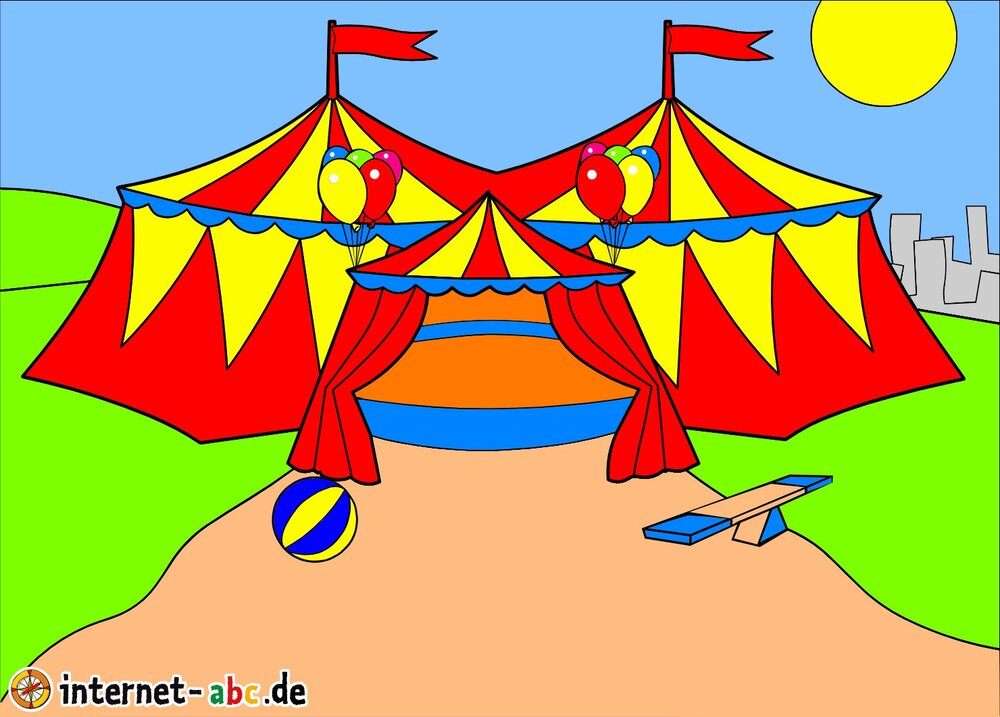 Gehst du gern in den Zirkus? Dann male doch ein schönes Bild mit den Internet-ABC-Tieren. Und erzähle dann eine kleine Geschichte dazu, okay?