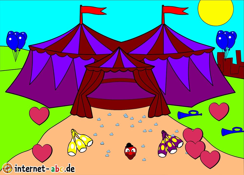 Gehst du gern in den Zirkus? Dann male doch ein schönes Bild mit den Internet-ABC-Tieren. Und erzähle dann eine kleine Geschichte dazu, okay?
