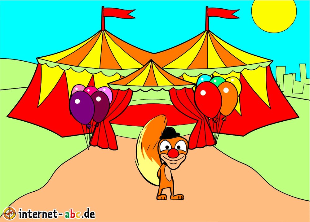Gehst du gern in den Zirkus? Dann male doch ein schönes Bild mit den Internet-ABC-Tieren. Und erzähle dann eine kleine Geschichte dazu, okay?