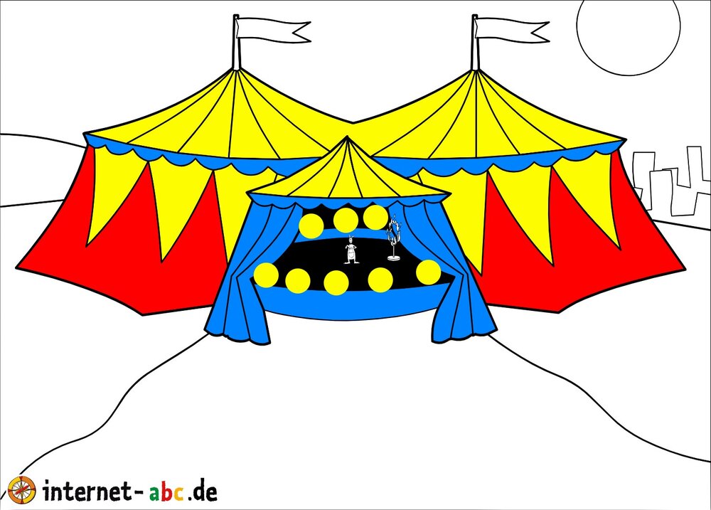 Gehst du gern in den Zirkus? Dann male doch ein schönes Bild mit den Internet-ABC-Tieren. Und erzähle dann eine kleine Geschichte dazu, okay?