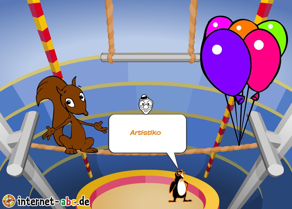 Gehst du gern in den Zirkus? Dann male doch ein schönes Bild mit den Internet-ABC-Tieren. Und erzähle dann eine kleine Geschichte dazu, okay?