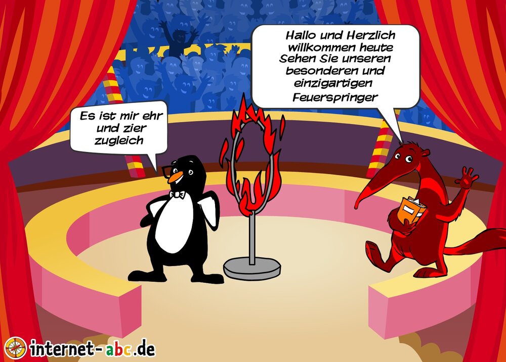 Gehst du gern in den Zirkus? Dann male doch ein schönes Bild mit den Internet-ABC-Tieren. Und erzähle dann eine kleine Geschichte dazu, okay?
