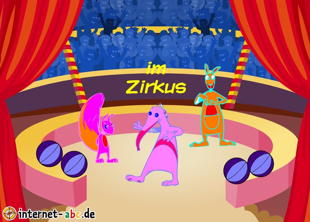 Gehst du gern in den Zirkus? Dann male doch ein schönes Bild mit den Internet-ABC-Tieren. Und erzähle dann eine kleine Geschichte dazu, okay?